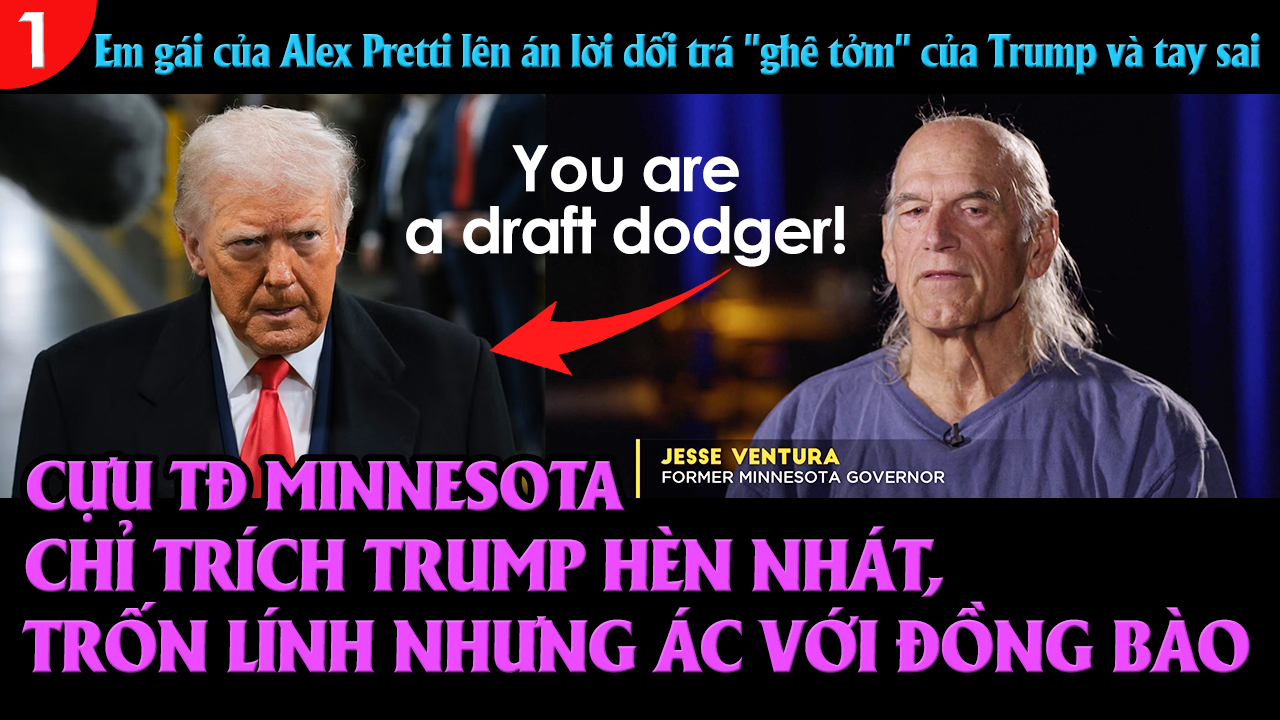 Bình LuậnNổi BậtVideo VL1-28.01: Cựu TĐ Minnesota chỉ trích Trump hèn nhát, trốn lính nhưng ác với đồng bào By Thanh Nguyen - January 28, 2026 0 1291 FacebookTwitterEmailPrintTelegramViberCopy URL