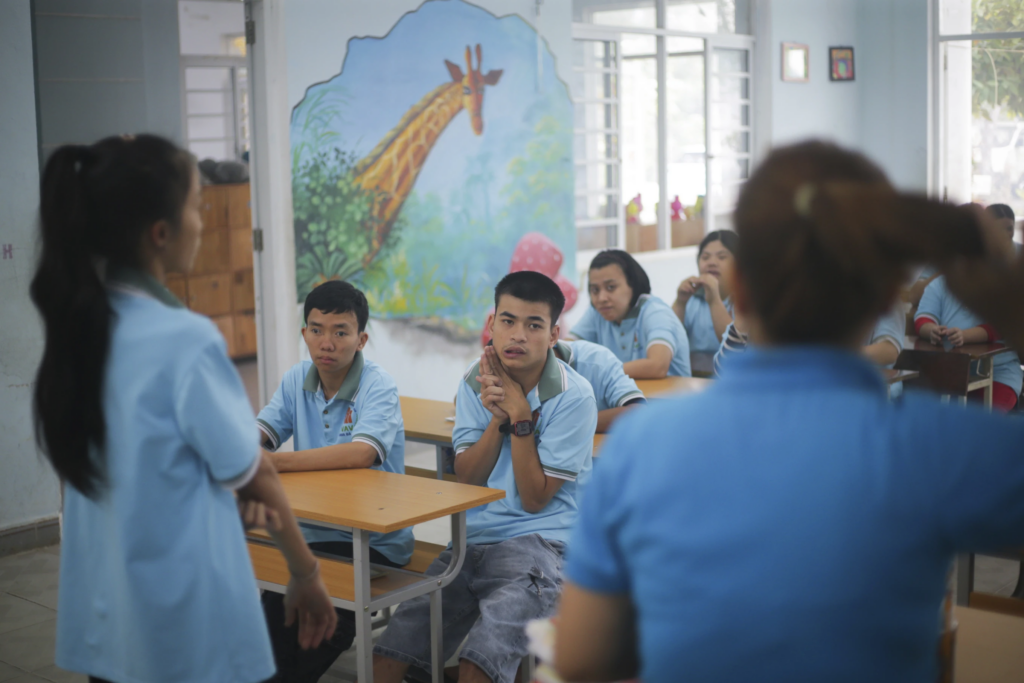 Người đàn ông 34 tuổi này mơ ước trở thành một người lính như ông nội của mình, đã không thể rời khỏi nhà trong nhiều năm, chờ đợi một mình trong khi gia đình anh đi làm. Chỉ mới năm năm trước, anh bắt đầu theo học một trường đặc biệt. “Tôi hạnh phúc ở đây vì tôi có nhiều bạn bè”, anh nói. Những học sinh khác tại trường hy vọng sẽ trở thành thợ may hoặc thợ làm nhang.