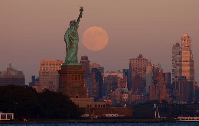 Tượng Nữ thần Tự do và đường chân trời Brooklyn ở New York vào đầu tháng này. Ảnh: Gary Hershorn/Getty Images