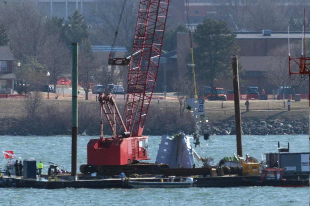 Các mảnh vỡ thu hồi được vào thứ Ba đã được nâng lên bằng cần cẩu và đặt lên xà lan cùng với các bộ phận khác thu hồi được từ chuyến bay cất cánh từ Wichita, Kansas, đến Phi trường quốc gia Reagan của Washington với 60 hành khách và bốn thành viên phi hành đoàn trên phi cơ. Một trong những mảnh thu hồi được vào đầu ngày cho thấy một phần logo American Eagle.