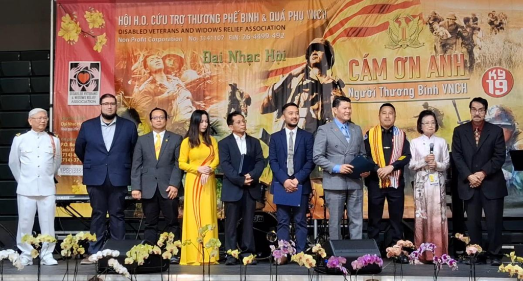 Nghị viên Biên Đoàn và ông Matthew Quevedo – phó chánh văn phòng của thị trưởng Matt Mahan; ông Nguyễn Thế Vũ đại diện Chủ tịch Giám Sát Viên Otto Lee; ông David Đức Nguyễn đại diện Giám Sát Viên Sylvia Arenas đã phát bằng tưởng lục cho Hội H.O Cứu Trợ Thương Phế Binh & Quả Phụ VNCH; Liên Hội Cựu Quân Nhân Bắc Cali; Hội Người Việt Cao Niên Vùng Vịnh Cựu Kim Sơn.