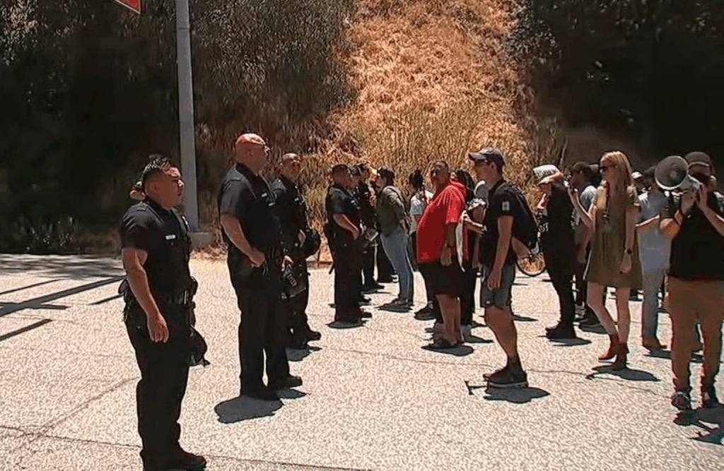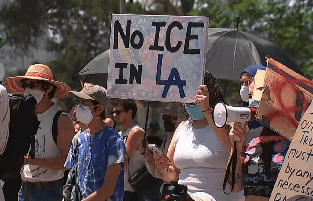 Cuộc biểu tình diễn ra sau khi có thông tin về hàng loạt cuộc truy quét của ICE trong ngày thứ Năm ở Los Angeles, bao gồm cả một vụ trước cửa hàng Home Depot trên đại lộ Sunset gần đó.