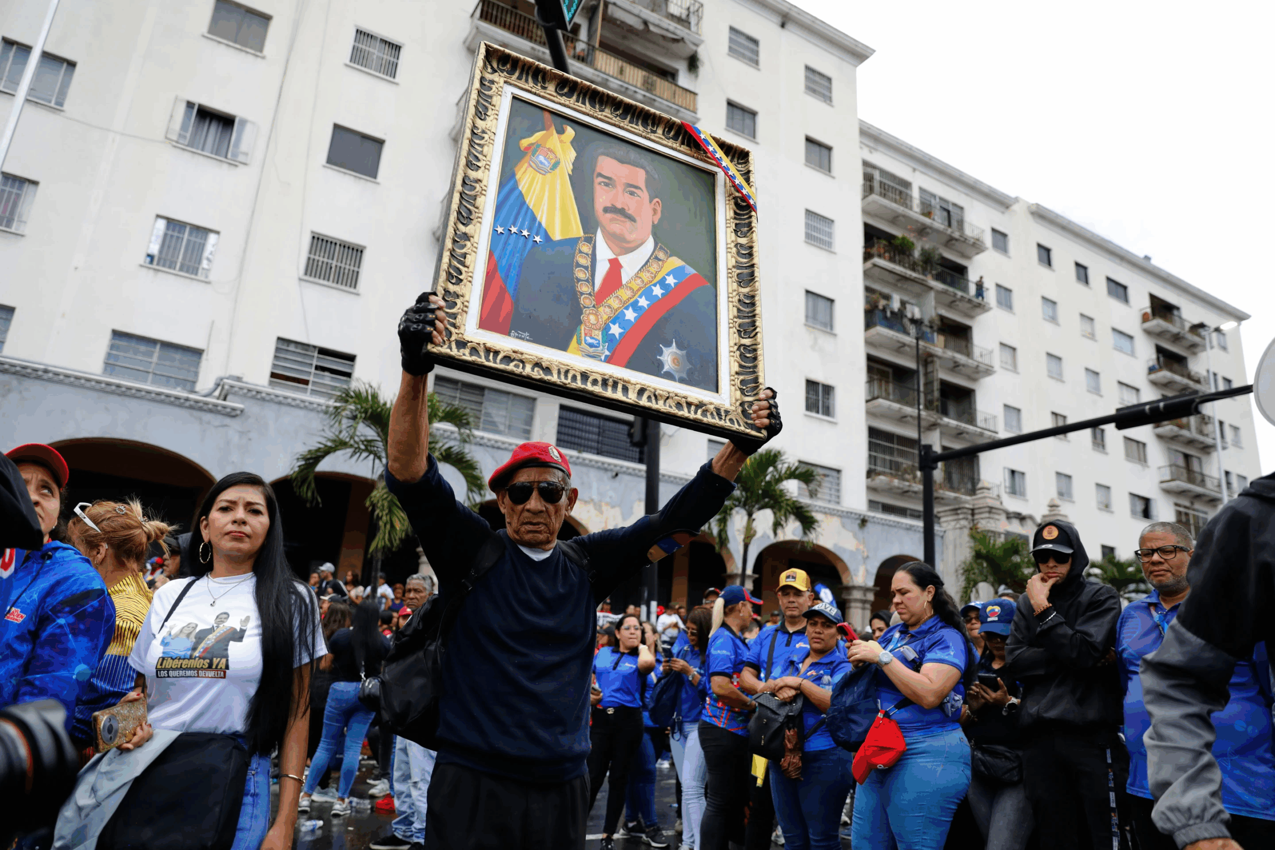 Những người ủng hộ cựu Tổng thống Venezuela Nicolas Maduro tập trung biểu tình kêu gọi trả tự do cho ông khi ông phải đối mặt với phiên tòa xét xử tại Hoa Kỳ sau khi bị lực lượng Mỹ bắt giữ, tại Caracas, Venezuela, thứ Sáu, ngày 14 tháng 1 năm 2026. (Ảnh AP/Cristian Hernandez)