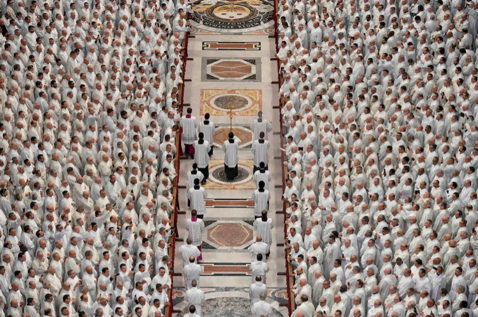 Đức Tổng Giám mục Rino Fisichella chủ trì thánh lễ Chúa Nhật thay cho Đức Giáo hoàng Phanxicô. Vatican, ngày 23 tháng 2 năm 2025. Vatican Media/Simone Risoluti/Handout qua REUTERS