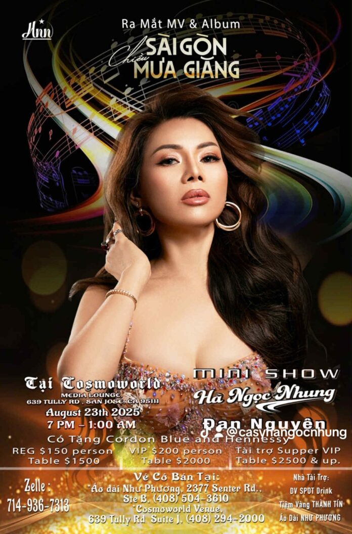 Chúc đêm nhạc ra mắt Sài Gòn Chiều Mưa Giăng của ca sĩ Hà Ngọc Nhung ở thành phố San Jose- Thung Lũng Hoa Vàng mọi điều tốt đẹp, tạo niềm hứng khởi để tiếp tục cất cao tiếng hát làm niềm vui cho đời.