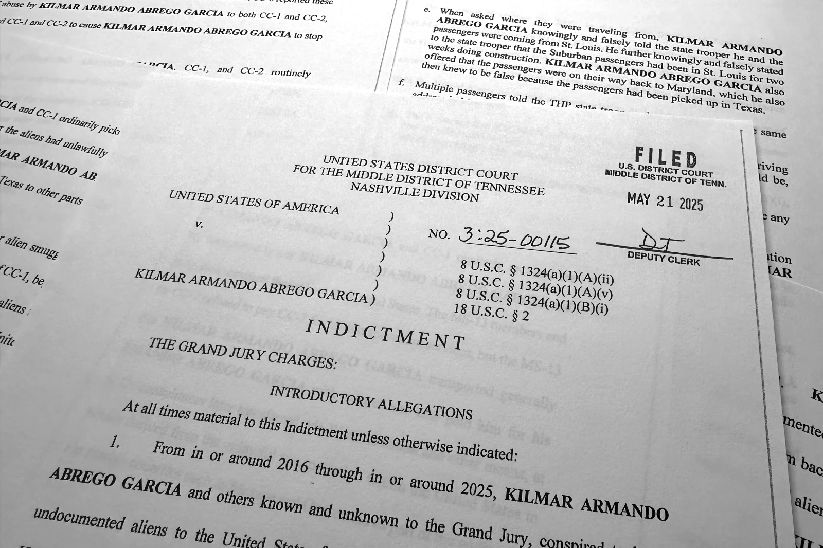 Sự kiện này xảy ra sau khi các quan chức Mỹ trình Tổng thống El Salvador Nayib Bukele lệnh bắt giữ liên bang tại Tennessee, cáo buộc Abrego Garcia giữ vai trò chính trong việc buôn người vào Hoa Kỳ để kiếm lời. Giới chức cho biết ông sẽ bị truy tố tại Mỹ và nếu bị kết án, sẽ bị trục xuất về El Salvador sau khi vụ án kết thúc.