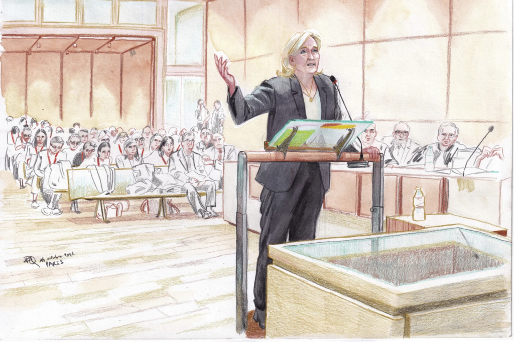 Le Pen đã vắng mặt khi thẩm phán tuyên án, khiến sự nghiệp của bà rơi vào khủng hoảng. Vào thời điểm đó, nữ chính trị gia 56 tuổi đã rời khỏi phòng xử án.