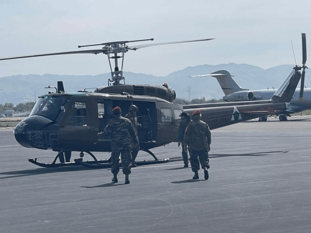Chiếc trực thăng UH- 1H, EMU- 309 đang bay trên bầu trời