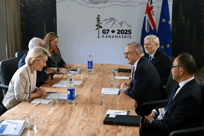 Quyết định khởi động đàm phán quốc phòng được đưa ra bên lề Hội nghị Thượng đỉnh G7 tại Canada, sau cuộc gặp giữa Chủ tịch Ủy ban châu Âu Ursula von der Leyen, Chủ tịch Hội đồng châu Âu António Costa, và Thủ tướng Úc Anthony Albanese.