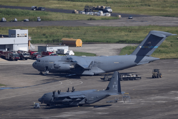 Theo dữ liệu theo dõi chuyến bay được The New York Times rà soát, trong vòng một tuần qua, các máy bay vận tải hạng nặng C-17 Globemaster III — chủ yếu dùng để vận chuyển binh sĩ và trang thiết bị quân sự — đã thực hiện ít nhất 16 chuyến bay tới Puerto Rico từ các căn cứ quân sự của Mỹ. Con số thực tế có thể cao hơn, do một số chuyến bay quân sự không xuất hiện trên các hệ thống theo dõi công khai, theo trao đổi với kiểm soát không lưu.