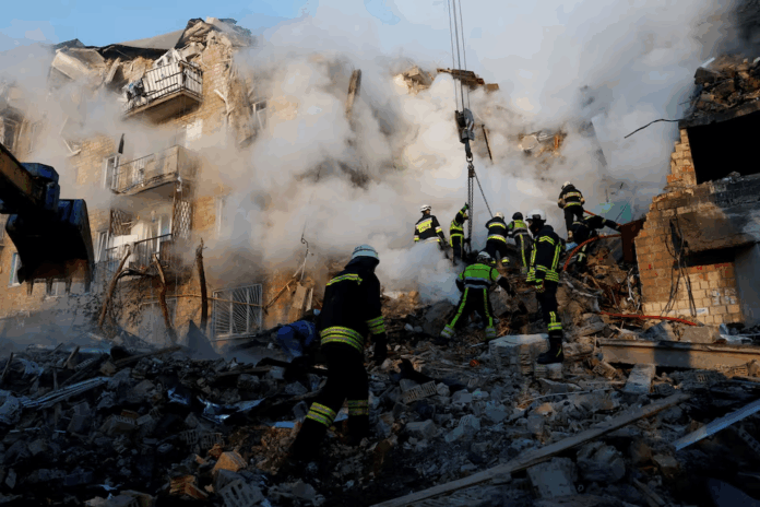 Ngày 28 tháng 8 (Reuters) – Quân đội Nga đã tiến hành một đợt tấn công bằng máy bay không người lái và tên lửa quy mô lớn qua đêm nhằm vào thủ đô Kyiv, khiến 10 người thiệt mạng, 38 người bị thương và làm hư hại nhiều tòa nhà dân cư cũng như cơ sở khác tại bảy quận, các quan chức Ukraine cho biết hôm thứ Năm.