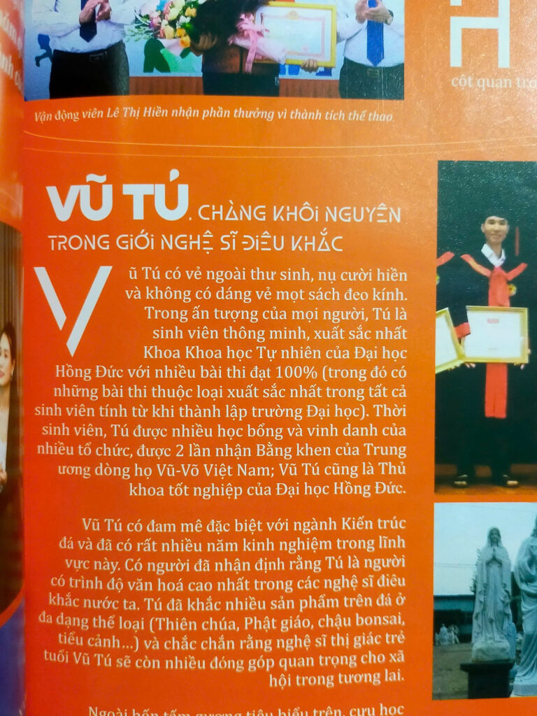 Một trang báo vinh danh nghệ sĩ điêu khắc Vũ Tú