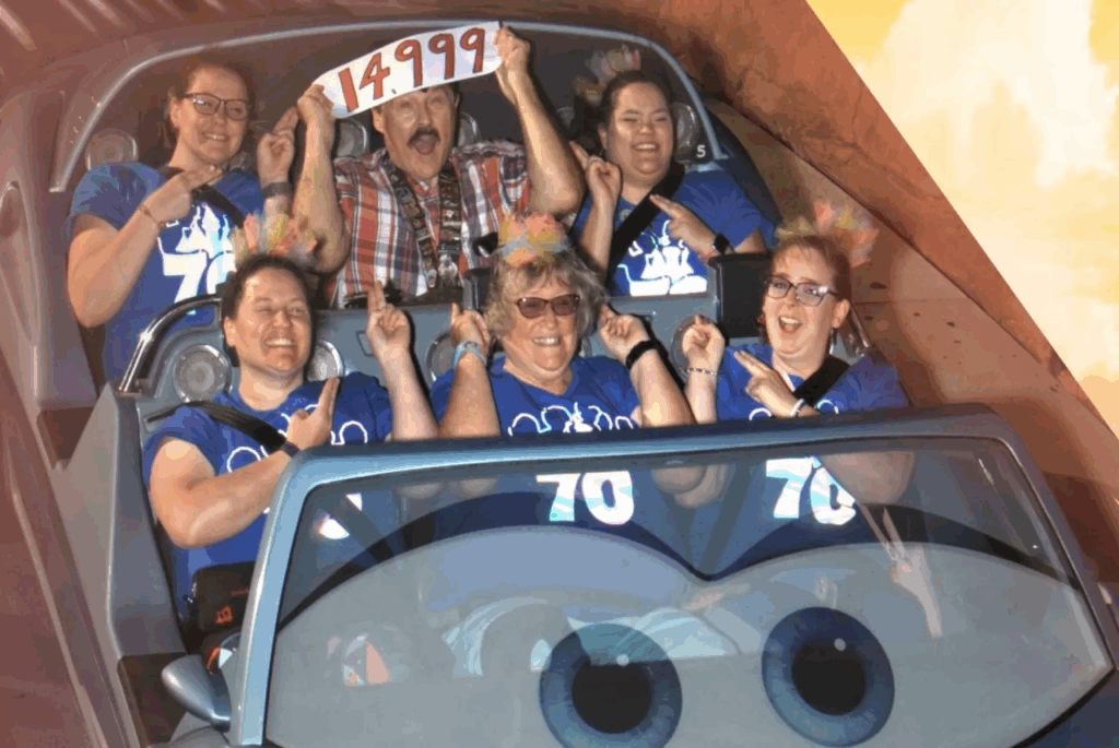 Những vòng đua quan trọng ở mốc 2.000, 5.000 và 9.000 được thực hiện cùng với những người bạn mà anh kết bạn tại DCA hoặc các thành viên đoàn đua Radiator Springs Racers — thuật ngữ mà Disney dùng để chỉ nhân viên.
