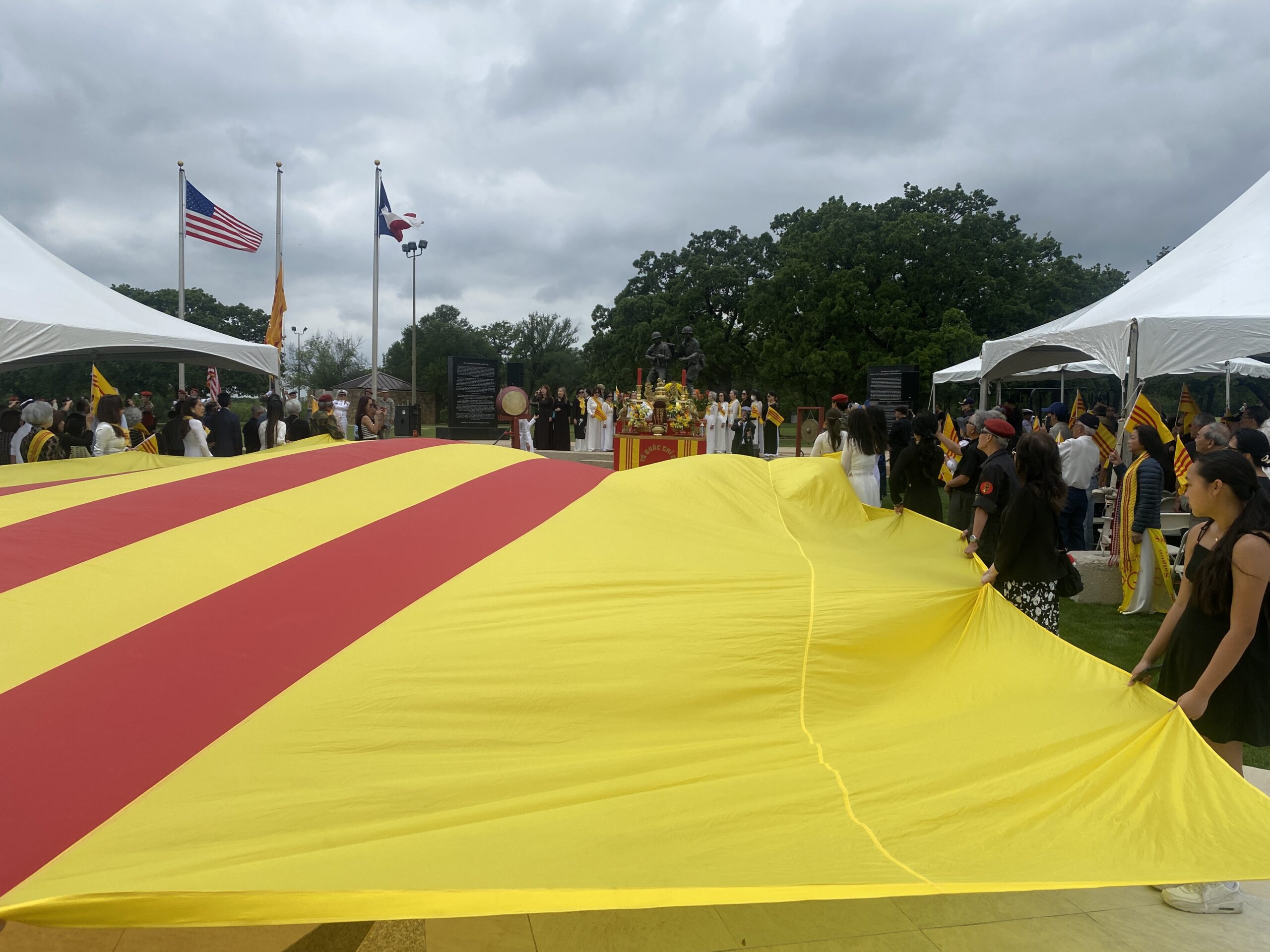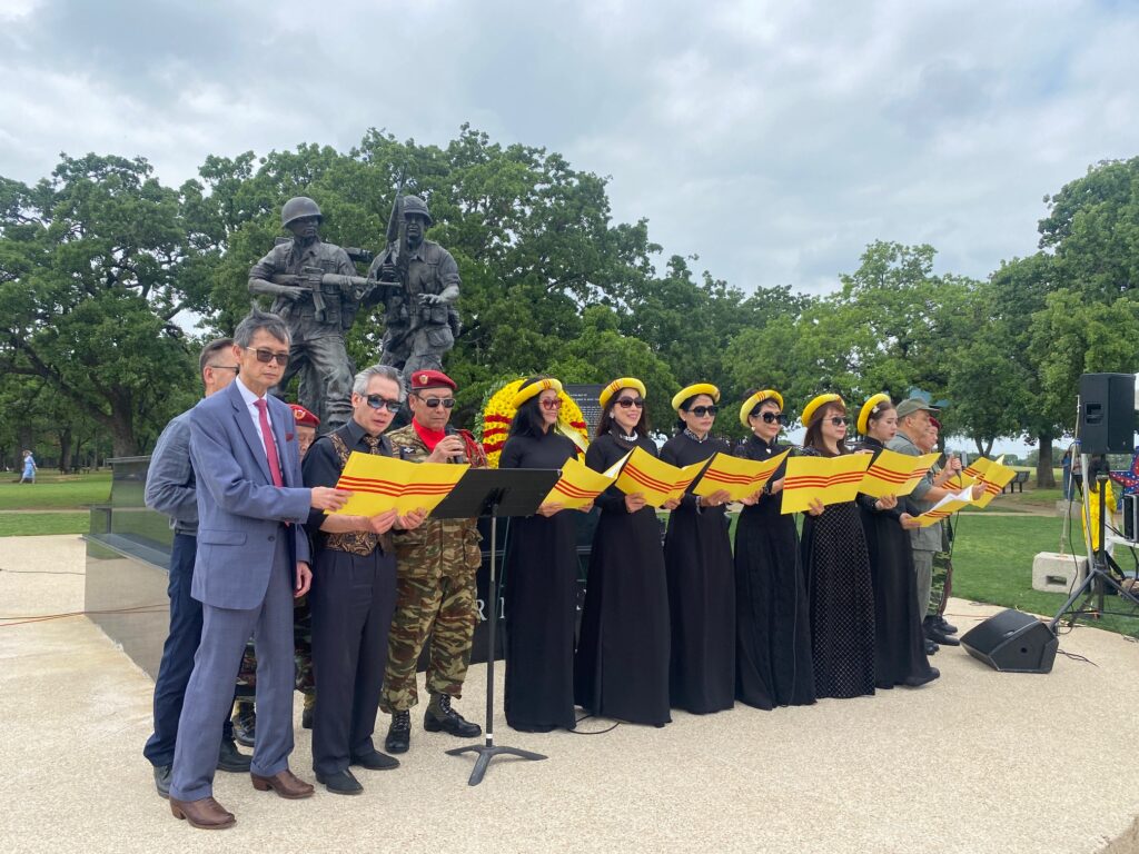 Buổi sáng Chủ nhật 27-4-2025, trong công viên Veteran Park thành phố Arlington, Texas, nơi đặt Tượng Đài Chiến Sĩ Việt Mỹ; mấy trăm đồng hương tề tựu dự lễ 50 Năm Quốc Hận 30-4.