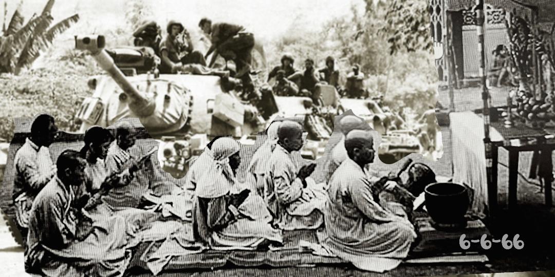 Chỉ một hai ngày sau đó, tình hình bắt đầu biến động với sự xuất hiện của binh lính từ Nam ra với xe quân sự, xe tăng hùng dũng di chuyển đến khắp các ngả đường với tư thế trực diện chiến đấu. Trên đường Quốc Lộ 1 từ Cây số 9 là nơi chúng tôi đã dựng và bảo vệ bàn thờ Phật vào đến Huế và ra phía Cây số 17 xe cộ thường dân bắt đầu vắng bóng, trên đường chỉ có xe quân sự. Tin tức từ Huế chuyển ra cho biết rằng: “lính ‘Trâu điên’ đang đập phá bàn thờ, đàn áp quần chúng!”.