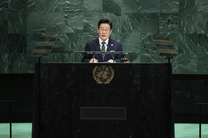 Trong bài phát biểu đầu tiên trước Đại hội đồng Liên Hiệp Quốc, ông Lee nhấn mạnh tầm nhìn về một “giải pháp theo từng giai đoạn” cho vấn đề hạt nhân Triều Tiên, “dựa trên nhận định tỉnh táo rằng việc phi hạt nhân hóa không thể đạt được trong ngắn hạn.”