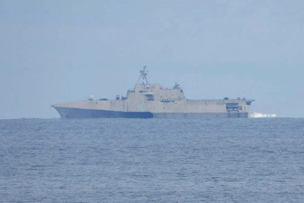 Trong bức ảnh này do Lực lượng bảo vệ bờ biển Philippines cung cấp, tàu USS Cincinnati (LCS 20) của Hải quân Hoa Kỳ tiến hành các hoạt động tự do hàng hải (FONOP) tại Biển Đông vào thứ Tư, ngày 13 tháng 8 năm 2025.Cảnh sát biển Philippines qua AP