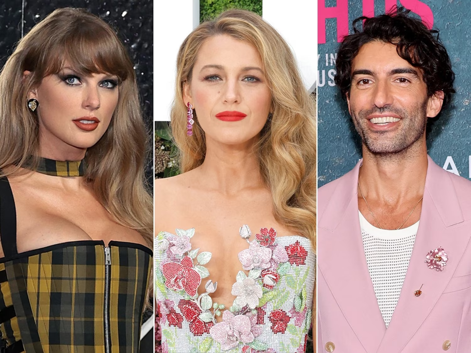 Taylor Swift tham dự Lễ trao giải MTV Video Music Awards 2024, ngày 11 tháng 9 năm 2024, tại Elmont, New York Blake Lively tham dự Buổi chiếu Gala của Vương quốc Anh cho "It Ends With Us", ngày 8 tháng 8 năm 2024, tại London. Justin Baldoni tham dự Buổi ra mắt "It Ends With Us" tại New York, ngày 6 tháng 8 năm 2024, tại New York. Hình ảnh Dimitrios Kambouris/Getty | Hình ảnh Lia Toby/Getty | Hình ảnh Cindy Ord/Getty