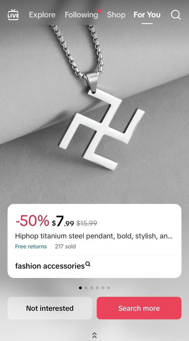 Theo Fox News, trước khi bị gỡ khỏi TikTok Shop, mô tả sản phẩm đã được đổi từ “biểu tượng swastika” sang “biểu tượng manji Phật giáo.”