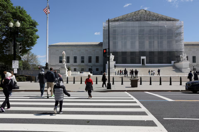 Mọi người đi bộ gần tòa nhà Tòa án Tối cao Hoa Kỳ tại Washington, DC, Hoa Kỳ, ngày 8 tháng 4 năm 2025. REUTERS/Jonathan Ernst/Ảnh lưu trữ