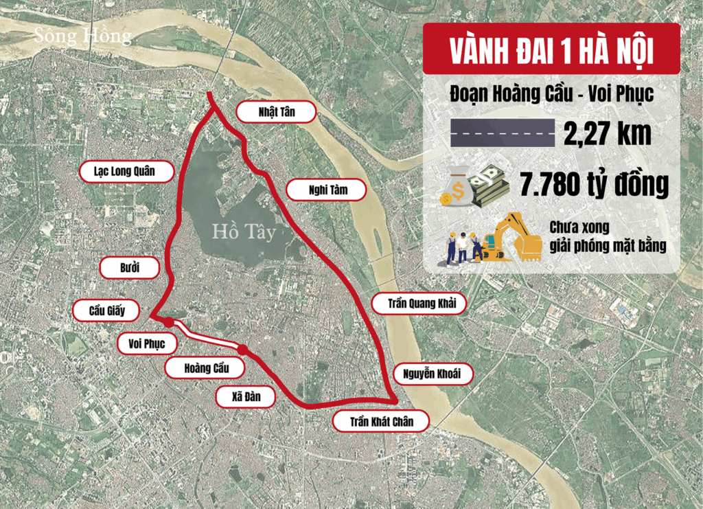 Ngày 5 tháng 12 năm 2025, nhà chức trách Hà Nội chính thức điều chỉnh thời hạn hoàn thành dự án xây dựng Đoạn Hoàng Cầu – Voi Phục của Đường Vành đai 1, kéo dài thời gian thực hiện sang đến hết năm 2026. Quyết định này được ban hành sau khi thành phố ghi nhận những vướng mắc nghiêm trọng trong công tác giải phóng mặt bằng, một trong những khâu then chốt để dự án có thể triển khai thi công theo đúng kế hoạch ban đầu.
