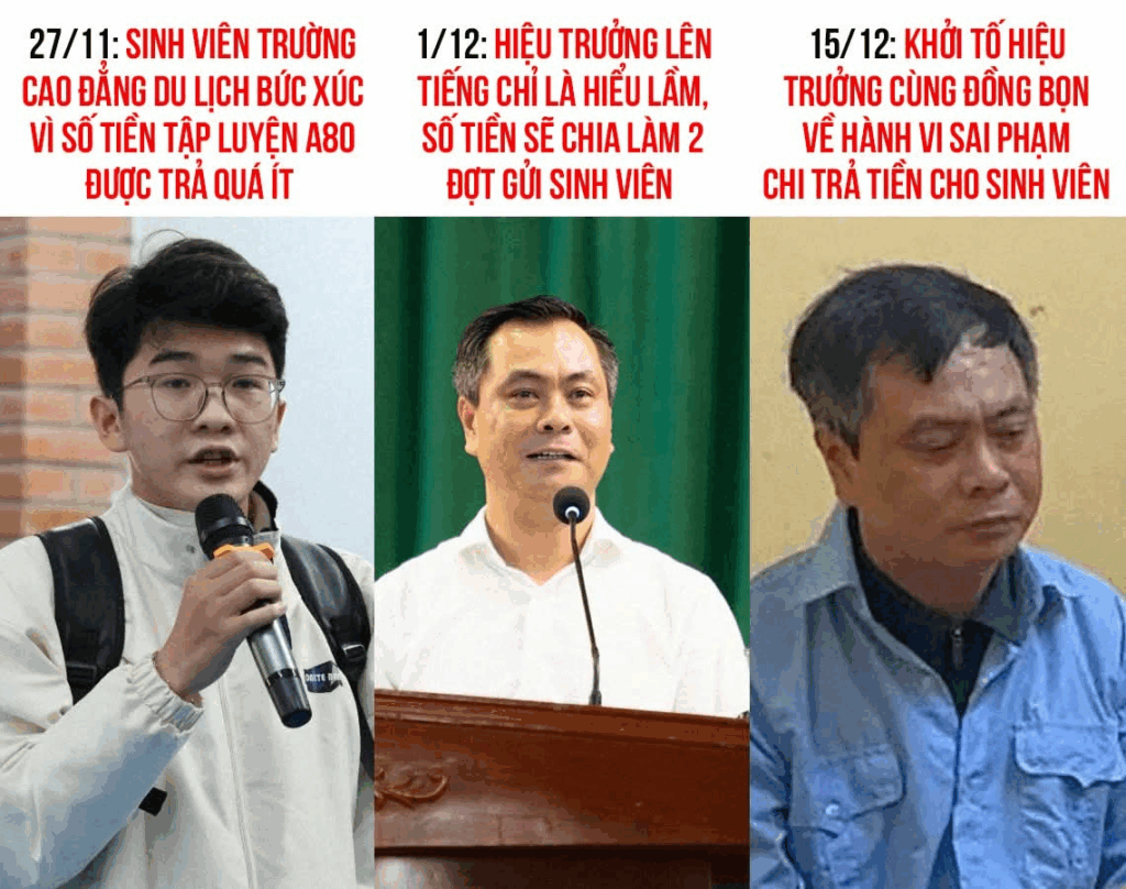 Cơ quan An ninh điều tra đã xác định ba bị can bàn bạc, thống nhất lợi dụng chức vụ, quyền hạn của mình trong quá trình thực hiện chi trả tiền bồi dưỡng cho sinh viên tham gia sự kiện A80, làm ảnh hưởng tới quyền lợi của các sinh viên và gây bức xúc trong dư luận xã hội. Việc này không chỉ khiến nhiều sinh viên không nhận được khoản hỗ trợ đầy đủ theo quy định, mà còn được cho là làm sai lệch chủ trương chi trả kinh phí đúng đắn của Đảng và Nhà nước, ảnh hưởng xấu đến uy tín và hình ảnh của cơ sở giáo dục.