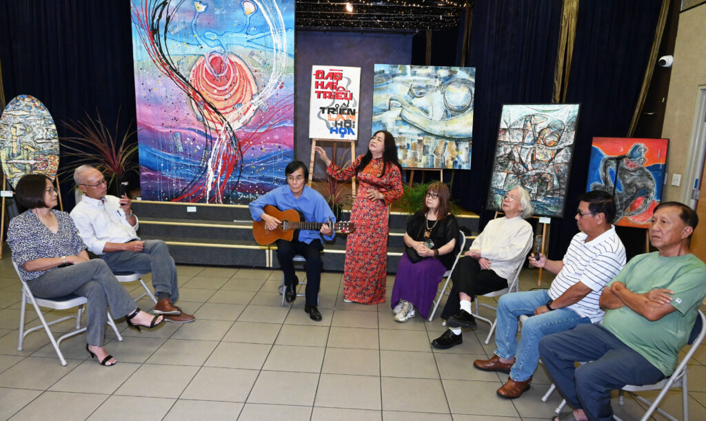 Buổi chiều Chủ Nhật, trước khi bế mạc phòng tranh thì nhạc sĩ Trần Chí Phúc và ca sĩ Phong Dinh đàn hát một số ca khúc của tác giả, tạo không khí văn nghệ, giao duyên hội họa và âm nhạc. Trần Chí Phúc đã hát bản Chiều Mưa San Jose gợi nhớ một thời cư ngụ thành phố này, Phong Dinh hát bản Mời Em Ghé Phố Bolsa.
