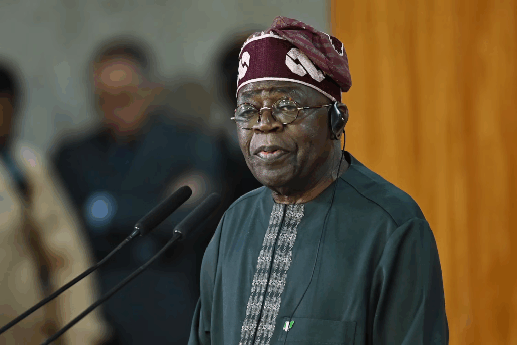 Tổng thống Nigeria, Bola Tinubu, phát biểu trong chuyến thăm chính thức tới Brazil tại Cung điện Planalto vào ngày 25 tháng 8 năm 2025 tại Brasilia, Brazil.
