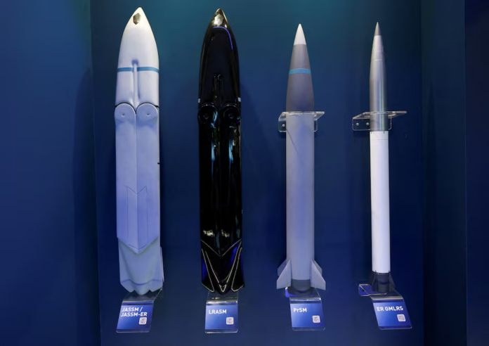 Tên lửa và rocket của Lockheed Martin được trưng bày tại Triển lãm hàng không quốc tế Úc ở Avalon, Úc ngày 25 tháng 3 năm 2025. REUTERS/Hollie Adams/Ảnh lưu trữ Quyền cấp phép mua