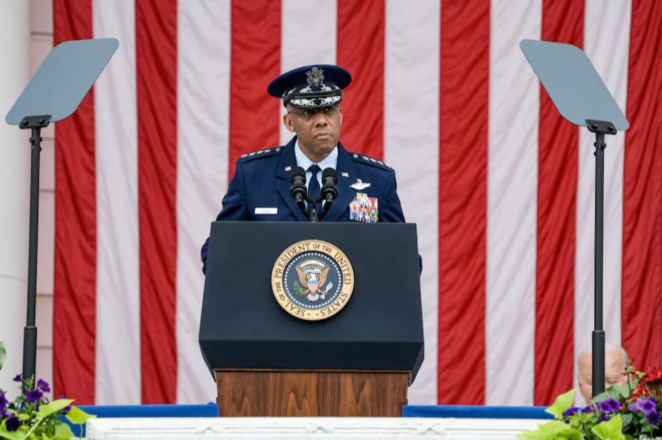 Chủ tịch Hội đồng Tham mưu trưởng Liên quân Hoa Kỳ, Tướng Charles Q. Brown phát biểu trong Ngày tưởng niệm thường niên tại Nghĩa trang Quốc gia Arlington ở Arlington, Virginia, Hoa Kỳ, ngày 27 tháng 5 năm 2024. REUTERS/Ken Cedeno/Ảnh lưu trữ