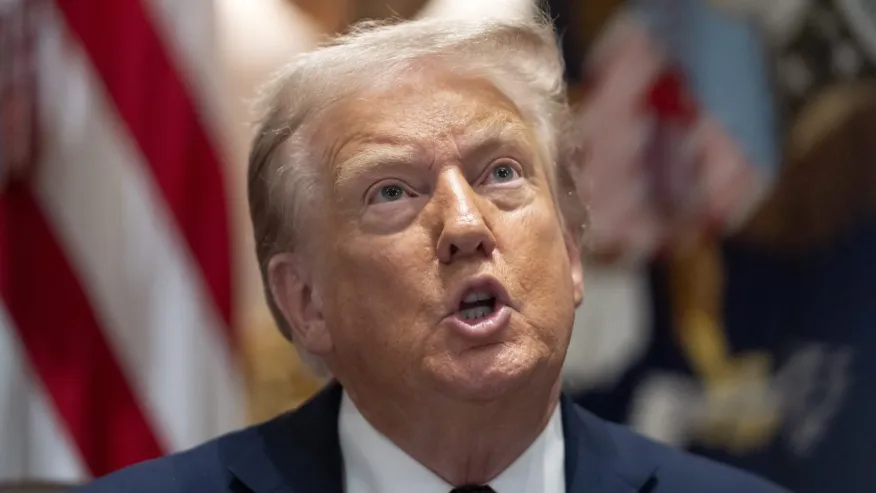 Tổng thống Donald Trump phát biểu trong cuộc họp nội các tại Nhà Trắng, thứ Ba, ngày 26 tháng 8 năm 2025, tại Washington. (Ảnh AP/Mark Schiefelbein)