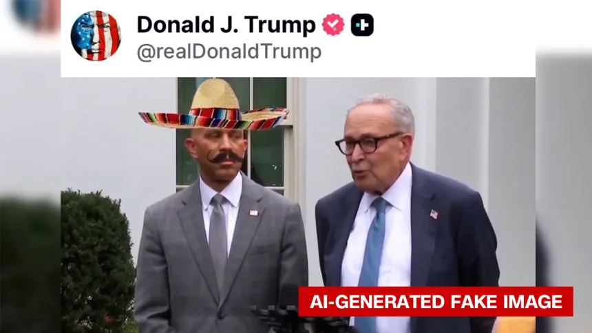 Khi chính phủ Mỹ tiến sát nguy cơ đóng cửa, Tổng thống Donald Trump đã chia sẻ trên mạng xã hội một đoạn video mang tính phân biệt chủng tộc, dường như do AI tạo ra, mô tả Hạ nghị sĩ Hakeem Jeffries (Lãnh đạo Thiểu số Hạ viện, Dân chủ–New York) đội mũ sombrero, để ria mép, và Thượng nghị sĩ Chuck Schumer (Lãnh đạo Thiểu số Thượng viện, Dân chủ–New York) nói bằng giọng giả tạo.