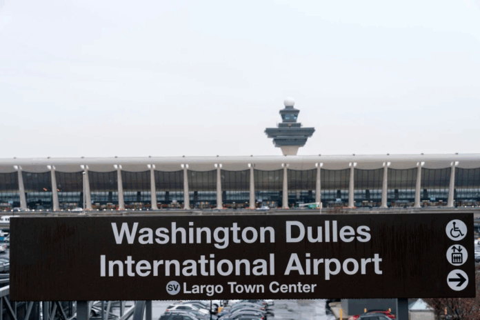 Biển báo của nhà ga Sân bay quốc tế Washington Dulles được nhìn thấy trong lễ khai trương Tuyến mở rộng Silver Line mới tại Sân bay quốc tế Washington Dulles, ở Chantilly, Va., ngày 15 tháng 11 năm 2022. (Ảnh AP/Jose Luis Magana, Hồ sơ)