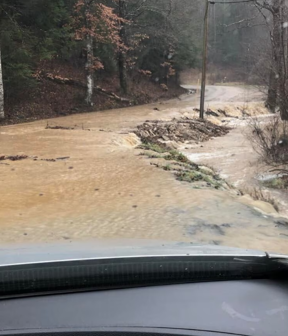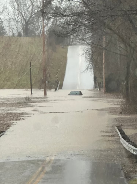 Mưa lớn đã gây ra lũ lụt ở phía nam Quận Barren, Kentucky, vào ngày 15 tháng 2 năm 2025. Được cung cấp bởi Kayla McCandless