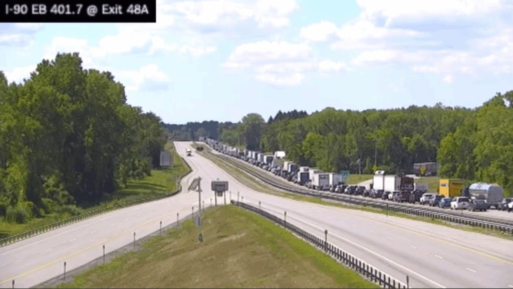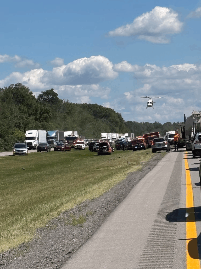 Quang cảnh đường I-90 tại nút giao thông 48A ở Pembroke sau vụ tai nạn vào ngày 22 tháng 8 năm 2025.